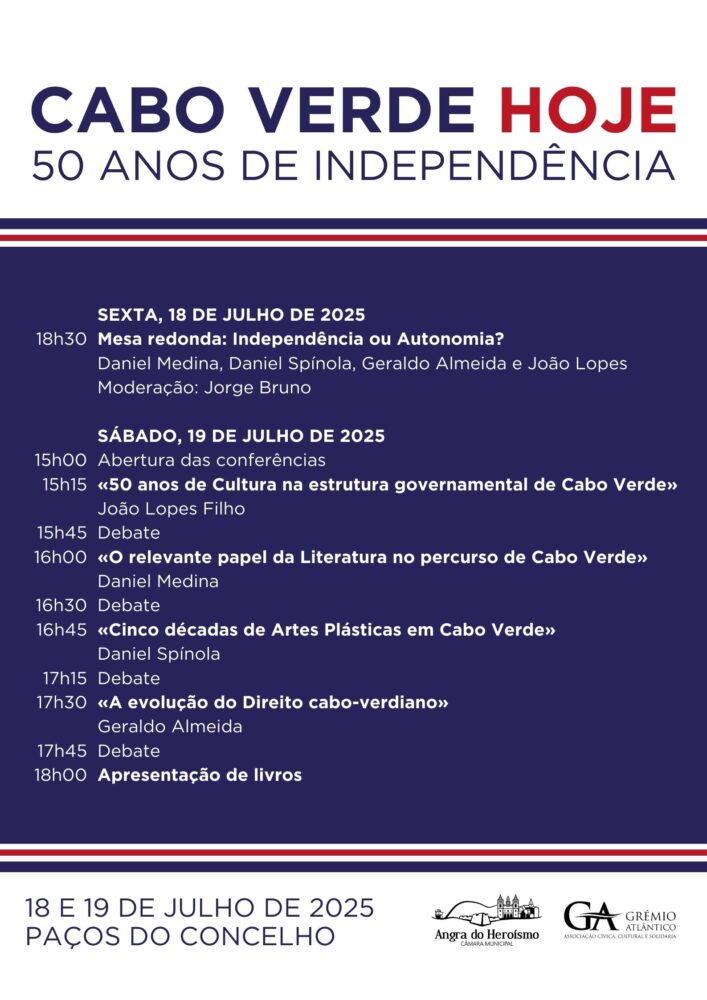 Nos dias 18 e 19 de julho de 2025, os Paços do Concelho de Angra do Heroísmo acolhem o ciclo de conferências “Cabo Verde Hoje – 50 Anos de Independência”, uma iniciativa que assinala meio século da independência cabo-verdiana através de debates e reflexões sobre o percurso histórico, cultural e político do país.